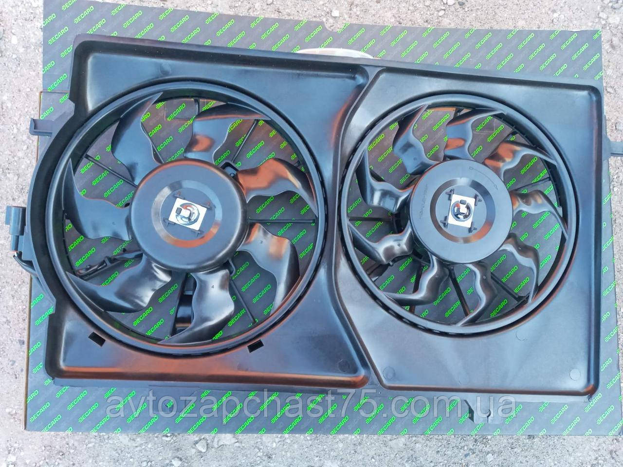 Електровентилятор охолодження радіатора ваз 2170, 2171, 2172 подвійний, у зборі з дифузором, для кондиціонерів Halla.